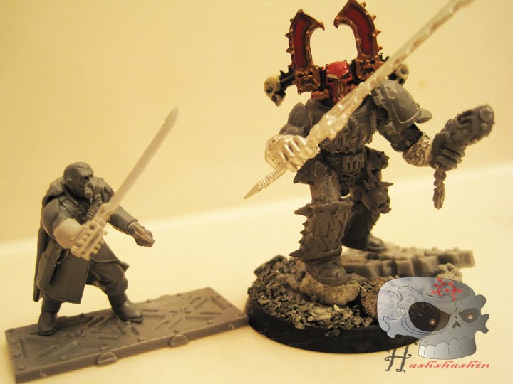 If you look at the stat line and in game effects I feel that I have modelled all of them quite well. Straken gets a 3+ armour save because he's half terminat...er...cyborg, Eligos, who also gets a three up save because he's the same rules as Straken, gets a 3+ because he's seen wearing power armour. I could go through all the rules but I won't I think I'm getting the point across even though fluff-wise the two 'characters' are vastly different, the model has been created to ensure there's not too much confusion after a brief explanation of what's what and it's basically logical that that model could preform those in-game effects.
